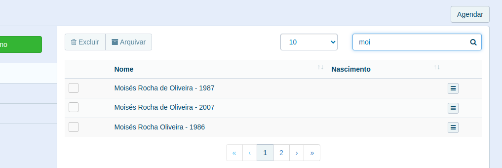 2. Utilize a barra de pesquisa para localizar os pacientes com o nome duplicado.